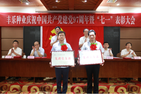 “七一”前夕,豐樂種業(yè)隆重召開慶祝中國共產(chǎn)黨建黨97周年暨“七一”表彰大會(huì)。會(huì)議表彰了豐樂種業(yè)2017-2018年度先進(jìn)黨支部、優(yōu)秀共產(chǎn)黨員和優(yōu)秀黨務(wù)工作者。香料公司黨支部榮獲優(yōu)秀黨支部榮譽(yù)稱號,李正元、孫志強(qiáng)、張翼軫榮獲優(yōu)秀共產(chǎn)黨員榮譽(yù)稱號,王樂準(zhǔn)榮獲優(yōu)秀黨務(wù)工作者榮譽(yù)稱號。
