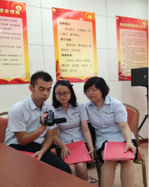 黨支部2位黨員張翼軫、郎梅梅,以及入黨積極分子趙以梅報名參加了朗誦。朗誦的片段是《習近平在參觀<復興之路>展覽時的講話》,三位同志反復練習、琢磨,準確把握住習總書記在參觀展覽時的思路和情感脈絡,用字正腔圓、抑揚頓挫的語言,重溫了那個第一次闡述“中國夢”的重要歷史瞬間。辦公室配合黨支部為朗誦配樂和錄像。
